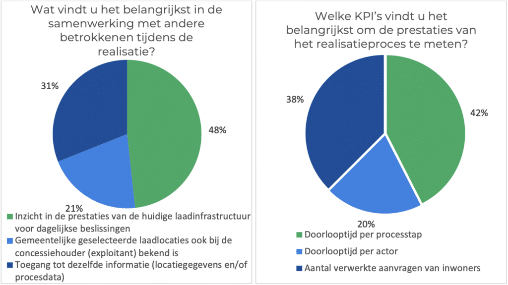 Hoewel gemeenten steeds vaker strategisch willen sturen op laadinfrastructuur, ontbreekt het hen vaak aan de juiste data en transparantie. Voor 48% van de respondenten is inzicht in de prestaties van de huidige laadinfrastructuur cruciaal, omdat dit hen helpt om laadpunten efficiënter te beheren en gemakkelijker te rapporteren. Daarnaast vindt 31% het belangrijk dat alle betrokken partijen toegang hebben tot dezelfde informatie, zoals locatiegegevens en procesdata. Een kleiner deel (21%) benadrukt dat het essentieel is dat gemeentelijk geselecteerde laadlocaties ook bij de concessiehouder bekend zijn. Interessant is dat 80% van de respondenten meer dan 1 antwoord ingevuld, wat suggereert dat gemeenten meerdere aspecten belangrijk vinden in de samenwerking.