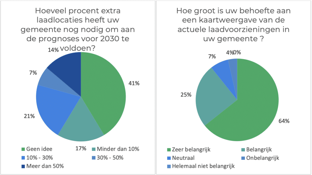 Tegelijkertijd zien we een sterke behoefte aan een overzichtelijke kaartweergave met de actuele laadinfrastructuur: 64% van de gemeenten vindt een kaartweergave hiervan zeer belangrijk en 25% belangrijk. Dit suggereert dat gemeenten locatiedata beter willen integreren in hun eigen (GIS-)systemen of deze toegankelijk willen maken voor inwoners als informatievoorziening. Daarnaast onderstreept deze behoefte het belang van een datagedreven aanpak. Besluitvorming en planning kunnen aanzienlijk verbeteren met een platform dat realtime inzicht biedt in de status en voortgang van de laadlocatie-uitbreiding.